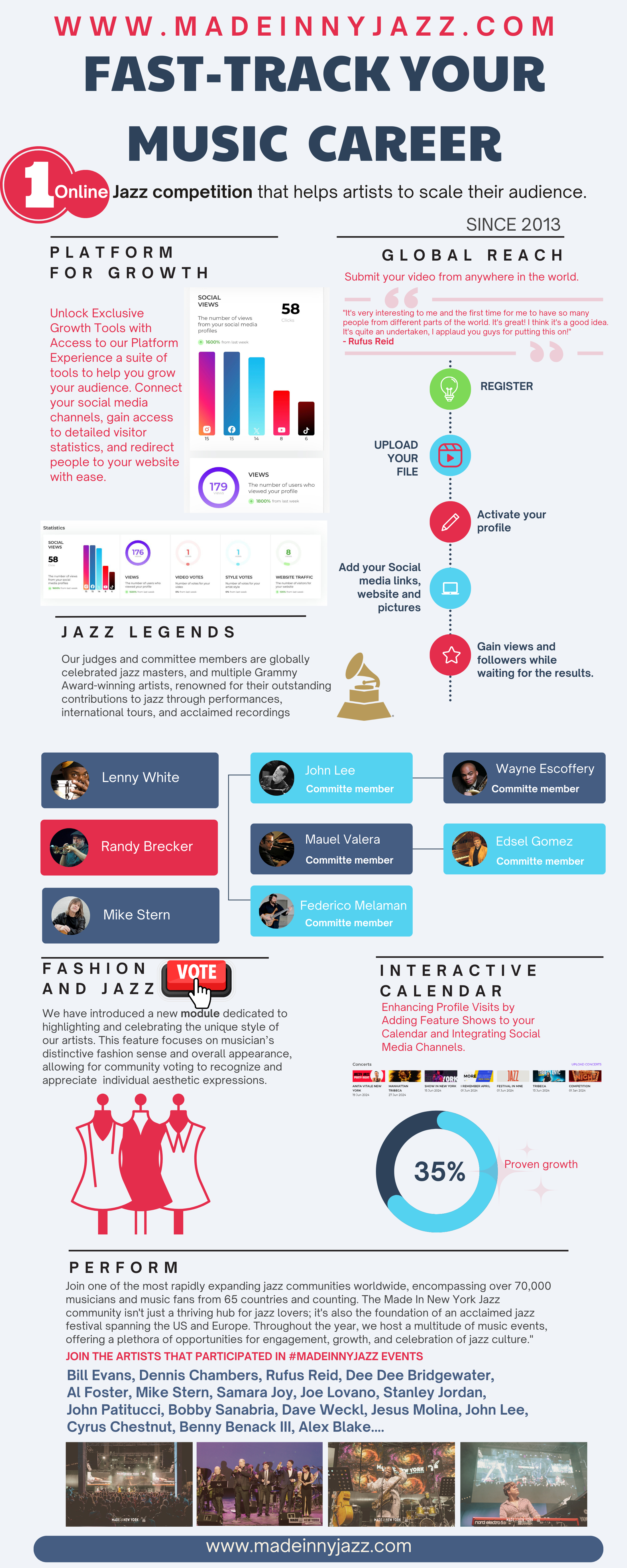 - Impress Legendary Judges: This year, our esteemed panel includes legendary American artists Randy Brecker, Lenny White, and Mike Stern.